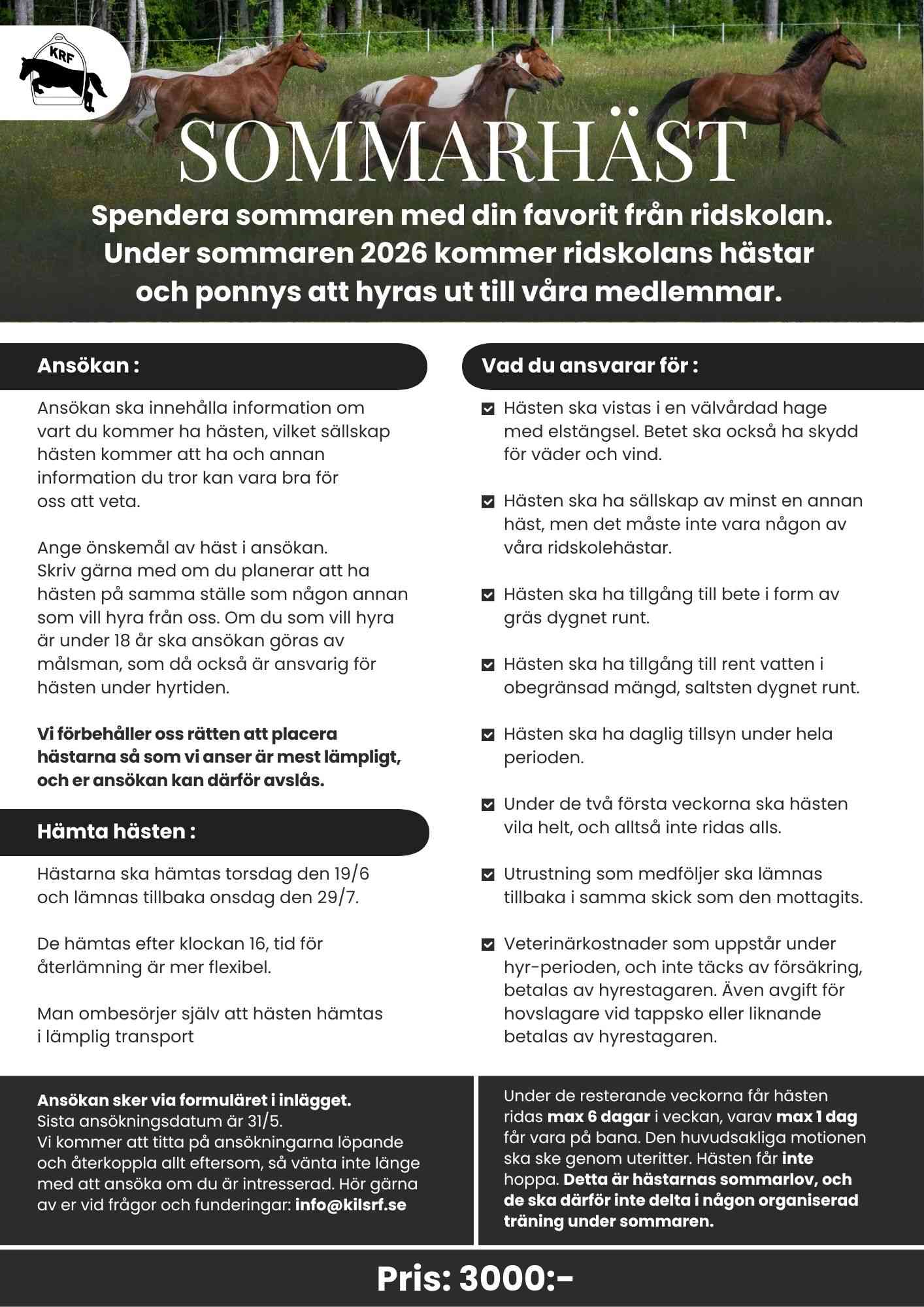 Välkommen att hyra en av våra ridskolehästar i sommar och spendera sommaren tillsammans med din favorit!